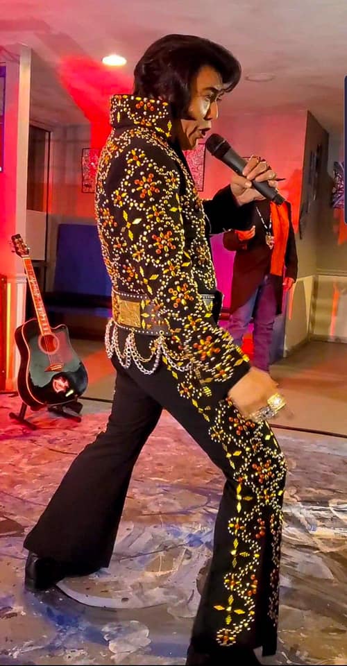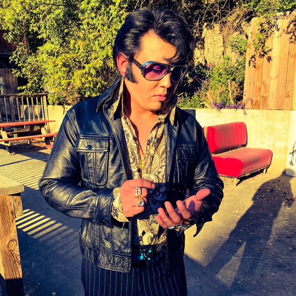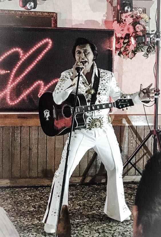 Travis Hudson is originally from Guatemala. He resides in San Antonio, TX. He is always asked if he is from San Antonio, and his response is, “No, but I got here as soon as I could.” Travis’s first language is Spanish, but since he has been in Texas most of his life, he now speaks Tex-Mex. At the age of 14 Travis saw a man on TV and asked his mom who he was. His mom said, “That’s Elvis.” Travis’s response was, “Wow he has some really nice hair. Can you make me a jumpsuit?” His mom looked at him with an “are you nuts” expression, but she agreed to make him a jumpsuit.