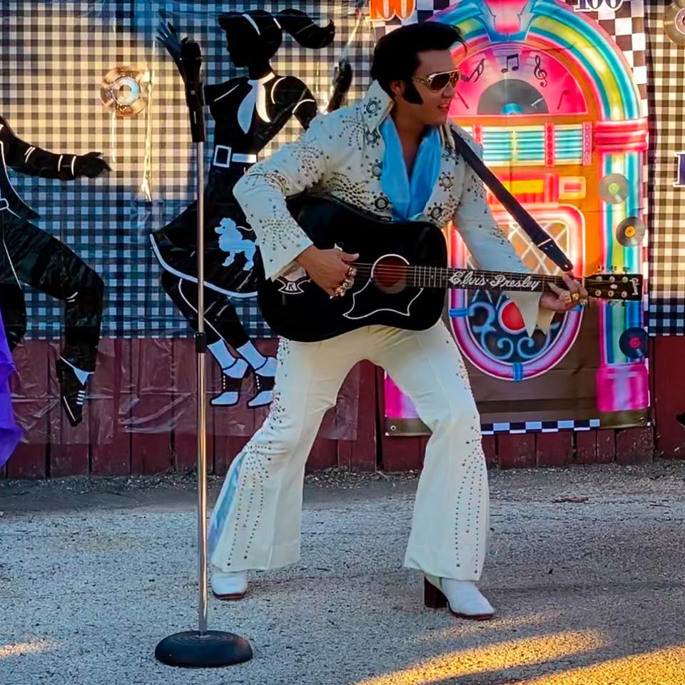 They both went to Hobby Lobby, and together they made a costume—from the jumpsuit and cape, right down to the shoes. Once the jumpsuit was done, Travis wore it to school for no apparent reason. The teachers and students started coming out of their classes to get their pictures taken. Travis didn’t sing Elvis songs at the time, nor he did he own one song of Elvis. A teacher approached Travis and asked him if he would like to sing for the debate competition that was coming up on the weekend. Travis then had to ask his dad to buy him a karaoke machine and to go to a music store and buy an Elvis karaoke track. Travis thought he would be singing in front of 20 people or so. It turned out to be over 400 people that he sang in front of on a stage. The first two songs that he sang were “Teddy Bear” and “All Shook Up”. Little did Travis know that this would pave his way into the ETA world.